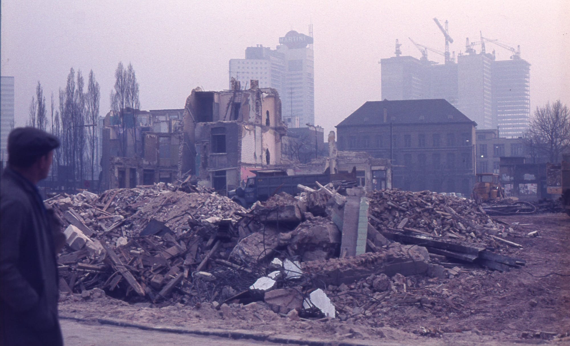 Wer heute durch den Brüsseler Stadtteil Noordwijk spaziert, sieht vor allem glänzende Bürohochhäuser und breite Alleen. Aber hinter dieser Kulisse verbirgt sich ein vergessenes Stück Stadtgeschichte. Bei einem Spaziergang mit der ErfgoedApp Sie, wie der Stadtteil einst zu einer trostlosen Ebene umgestaltet wurde – und wie Kunst vorübergehend Farbe und Leben hineinbrachte.